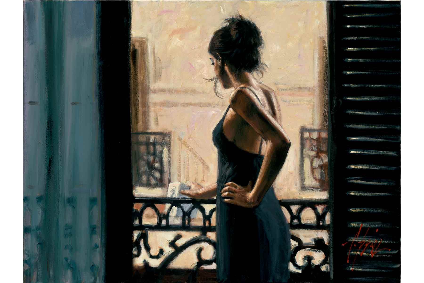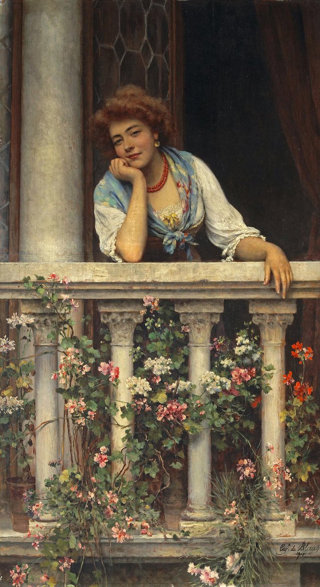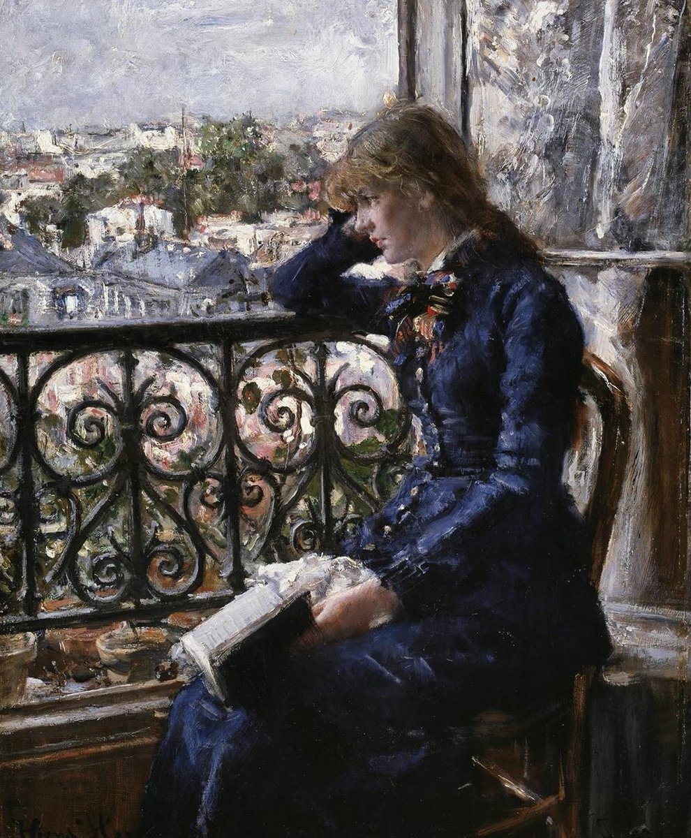 В картине «Балкон» двое именно таких мужчин смотрят на улицу — на этот раз это большой парижский бульвар, «река жизни», как назвач его Ги де Мопассан. Однако высоко расположенный угол зрения и деревья, кроны которых достигают балкона, не позволяют нам увидеть, что происходит внизу. Жизнь города отходит на задний план, худолшик скорее стремится изобразить одиночество парижанина. Впрочем, в его полотнах часто происходит столкновение частного и социального пространств, взаимно проникающих или противопоставляющихся друг другу. Балкон является соединяющим звеном между ними, продолжением квартиры, то есть частной территории, и в то же время относится к коллективному составляющему улицы.