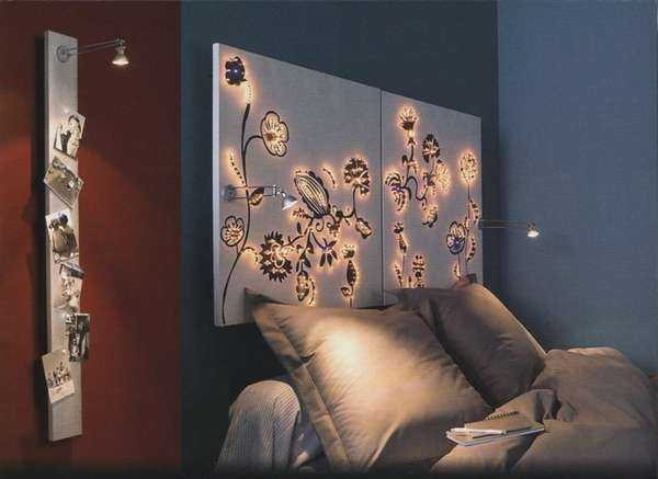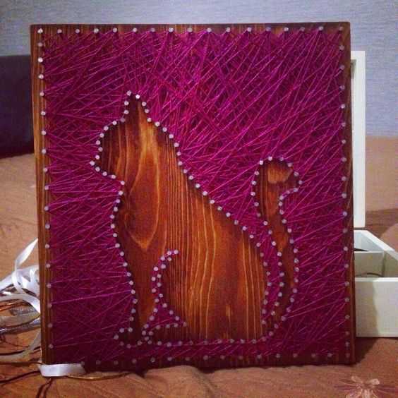 Уникальным украшением интерьера может стать стильное панно своими руками, изготовленное с помощью обычных гвоздей и разноцветных ниток. Это искусство носит название стринг арт (string art). Подложка для такой поделки может быть из дерева или пенопласта. Во втором случае, гвозди можно заменить булавками. Вырезанный из бумаги эскиз прикладывается к основе (ее можно предварительно окрасить в необходимый цвет акриловыми красками) и фиксируется по всему периметру гвоздями (булавками). Затем бумага аккуратно отрывается, а гвозди обматываются нитями в любом порядке, но так, чтобы толщина была везде равномерной. Образцы таких панно своими руками есть на фото в нашей статье. Если сложно поначалу самому придумать эскиз, можно воспользоваться схемами-рисунками, имеющимися в интернете.