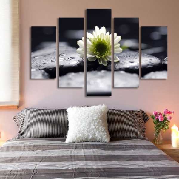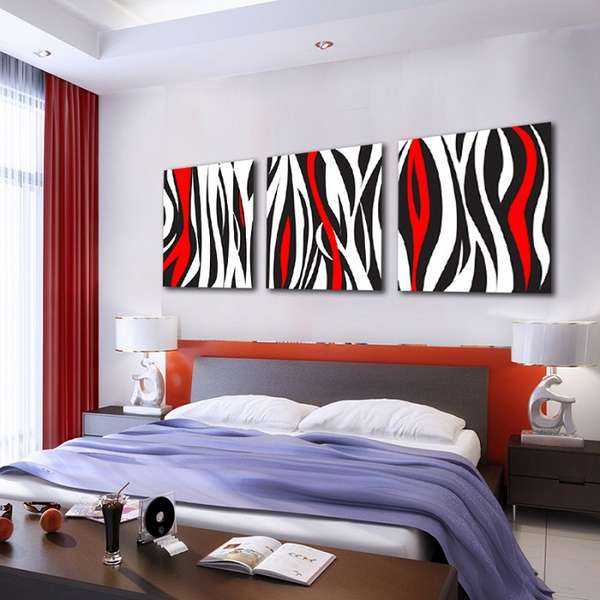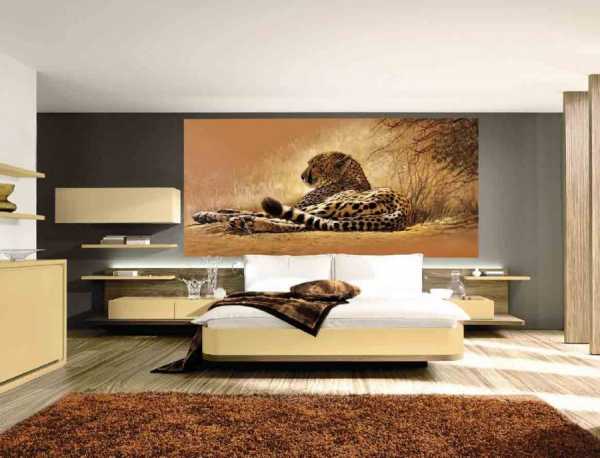 Лучше всего подойдет панно на стену с изображением природы напротив кровати. Вся композиция должна быть спокойной расцветки и небольших размеров, чтобы лишний раз не привлекать к себе особого внимания.