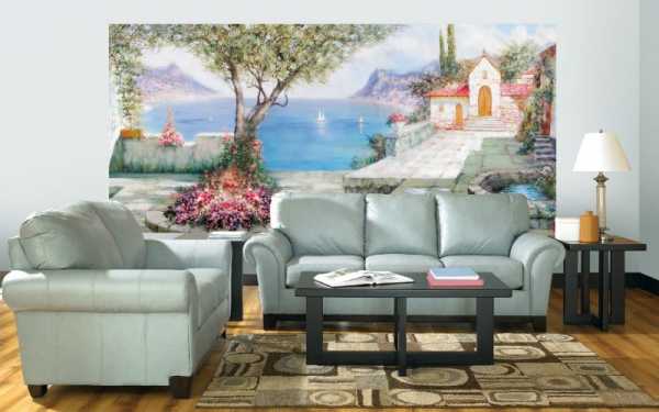 - Выбор рисунка. Это, пожалуй, ключевой момент, ведь он задает тон в помещении небольшого размера. Отличным вариантом будет изображение, которое уходит вдаль, – таким образом комната визуально расширяется.