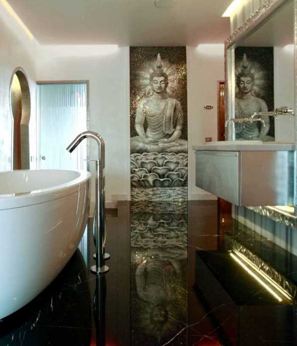 С изображением на панно все проще. Для ванны можно подобрать любой вариант, от мозаики и до репродукции известных картин. Главное требование — соответствие предпочтениям хозяев дома.