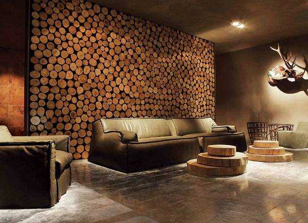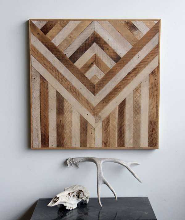 Другая композиция – мировая карта, нанесенная на деревянную основу, состоящую из нескольких блоков. К такой композиции стоит добавить освещение, и тогда древесное панно с подсветкой станет главным акцентом всего интерьера.