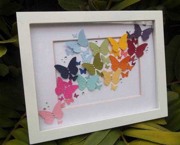 Для создания нежного и необычного интерьера, можно изготовить своими руками панно «бабочка». Фото демонстрирует, насколько креативно выглядит подобное изделие в дизайне интерьера. Причем, если не полениться, бумажных бабочек можно украсить различными бусинками, а крылышки сделать фигурными, используя специальные ножницы. Поверхностью для нанесения этих маленьких элементов может служить как сама стена, так и фанера, которая установлена на поверхности. Прикрепить бабочку к поверхности можно с помощью двухстороннего скотча.
