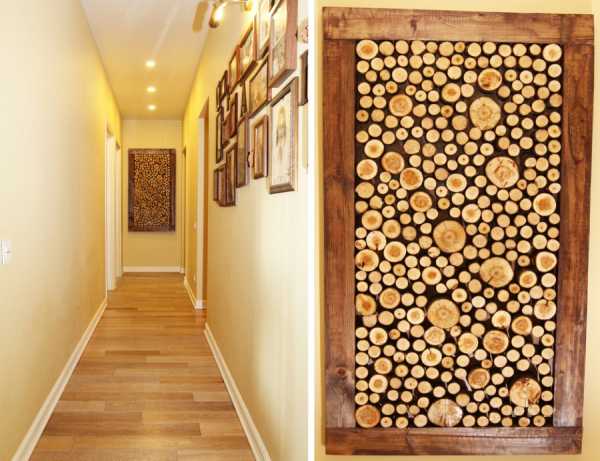 Зеркальное панно или композиция «времена года» станет отличным украшением коридора квартиры, выполненной в похожем стиле. Для более мрачных интерьеров жилища подойдут темные цвета. Панно можно установить из обработанного дерева соответствующего оттенка.