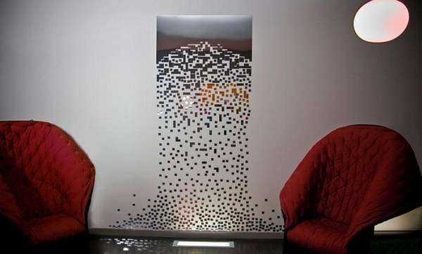Есть вариант модульных панно, которые приклеиваются на стену и в готовом виде создают эффект картины. Причем если захочется их поменять, то можно не удалять все обои, а только участки, где оформлено панно.