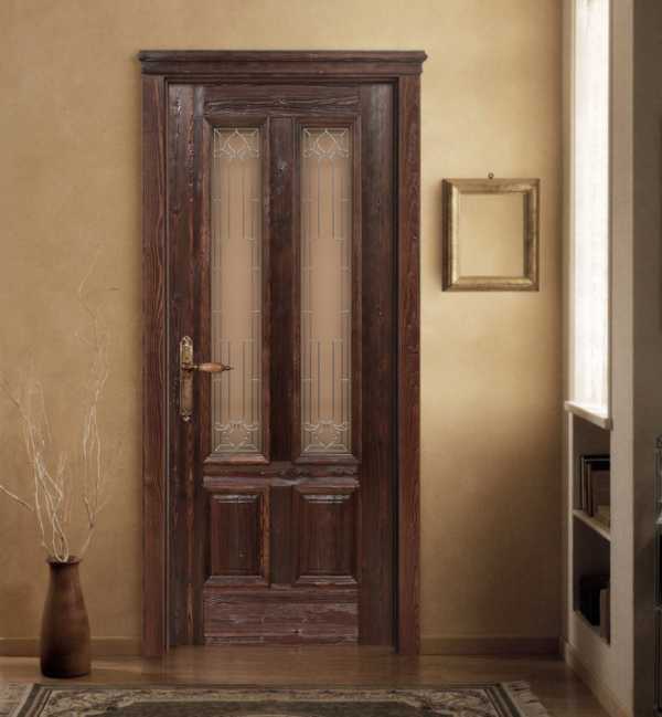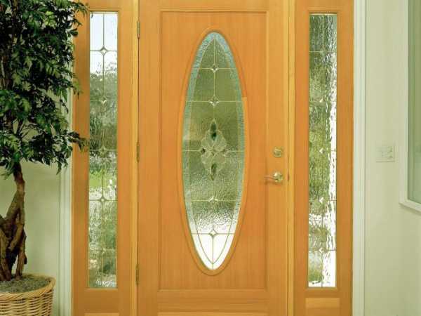 Красивая деревянная дверь со стеклянными вставками