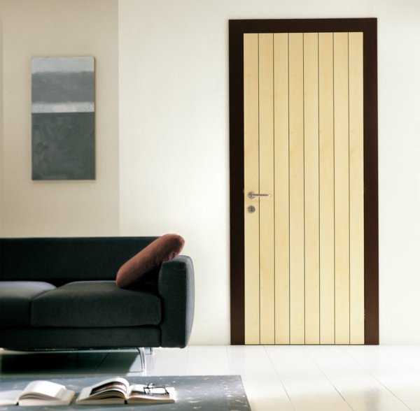 Простая и элегантная деревянная дверь с более светлой дверной рамой