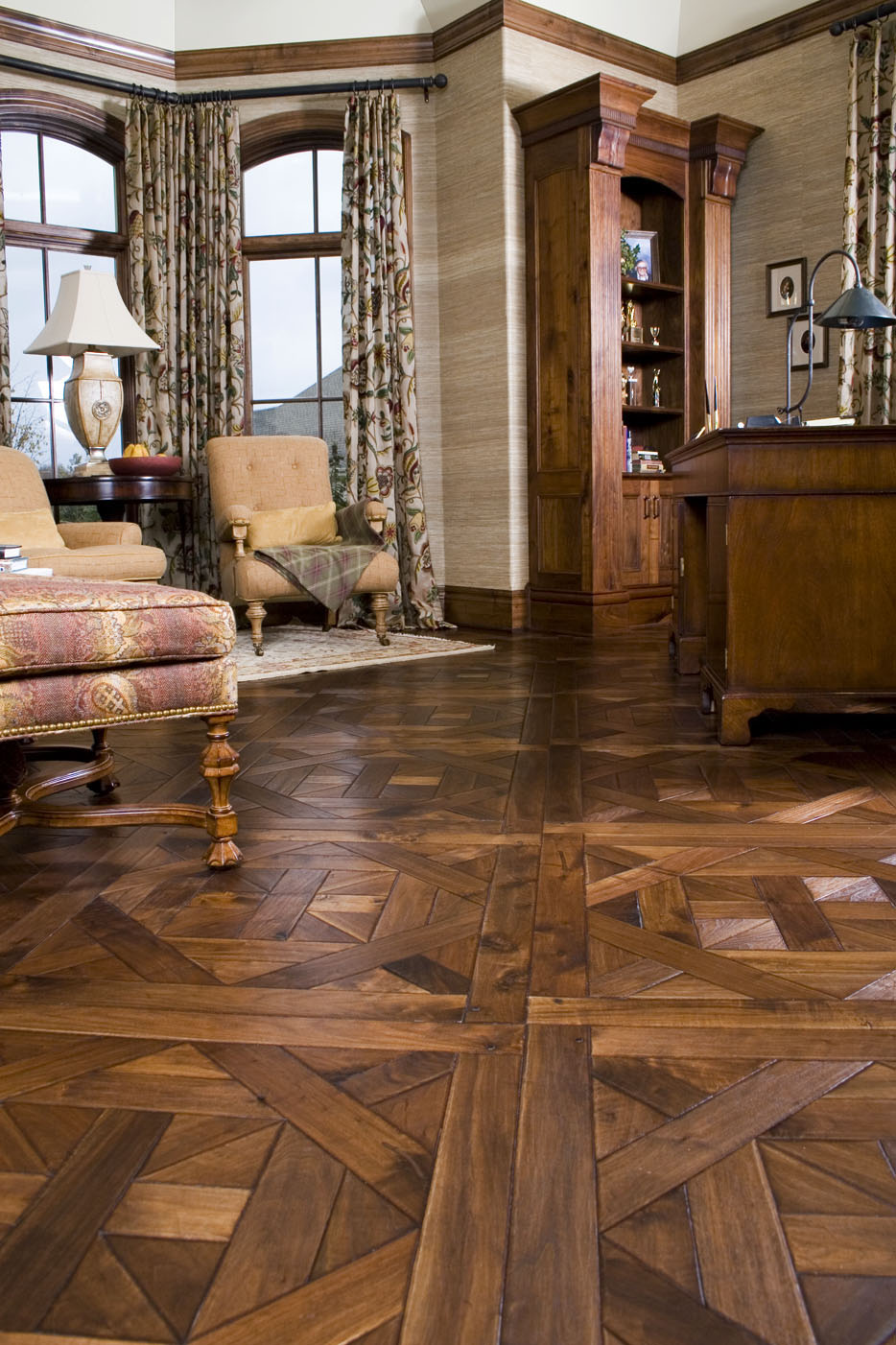 Чтобы создать высокохудожественный рисунок, используют разные породы древесины, которые нужно подобрать таким образом, чтобы они не влияли друг на друга при изменении температуры и влажности. Кроме того, размеры дощечек используются не просто разные, а фигурные, что значительно замедляет работу, удорожает паркет и делает его неповторимым;