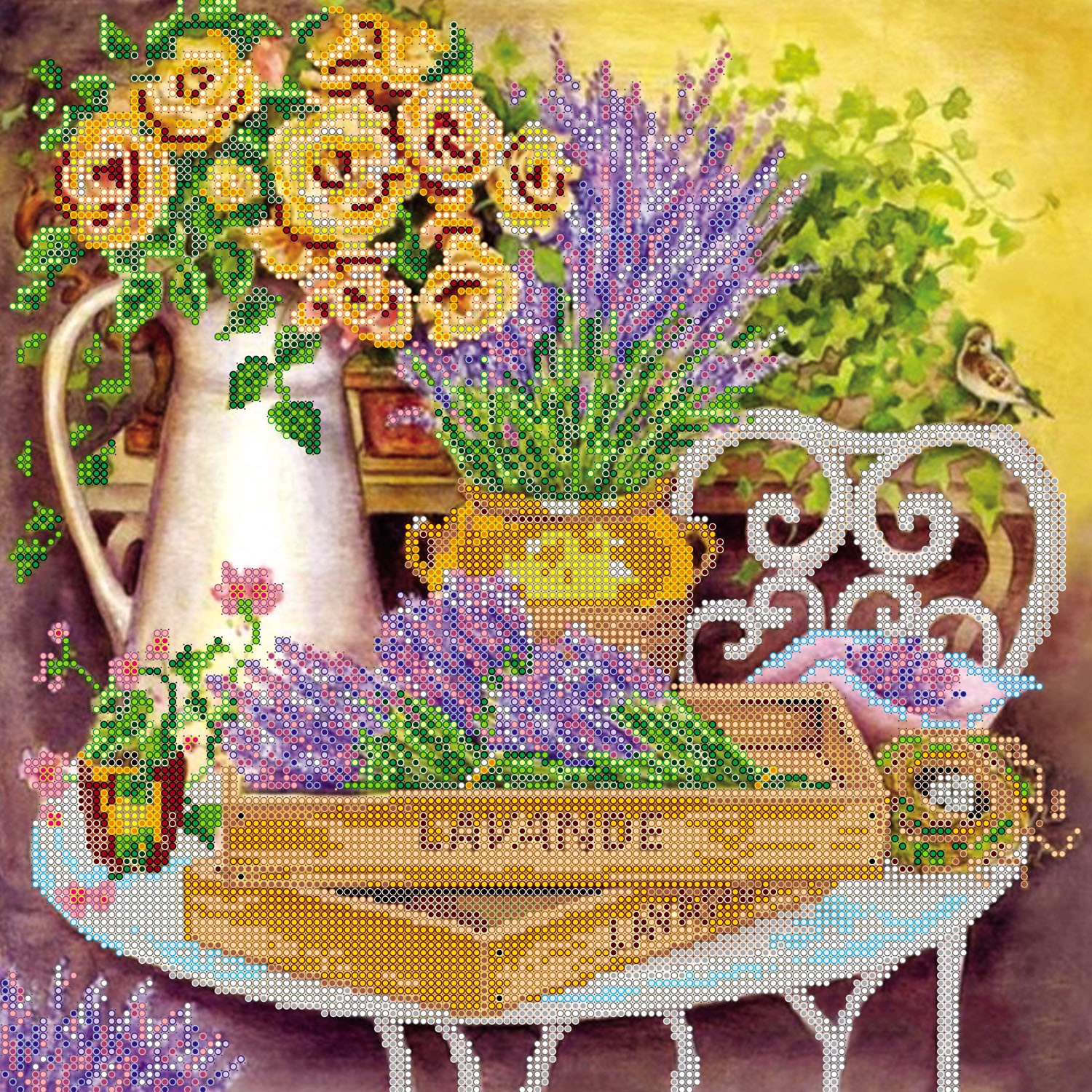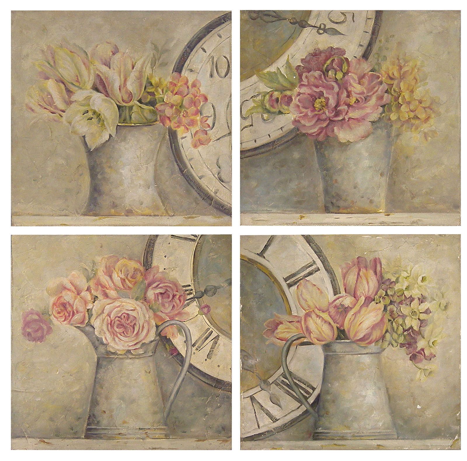. Лаванда – «визитная карточка» Прованса, поэтому полотна с ней всегда будут беспроигрышным вариантом. Наряду с лавандой нередко применяют изображения роз, но не красных, а приглушенных бежевых, пудровых. Картины с розами украсят спальню молодой девушки, семейной пары. Во многих случаях цветы изображаются в старых вазах, треснувших от времени кувшинах.