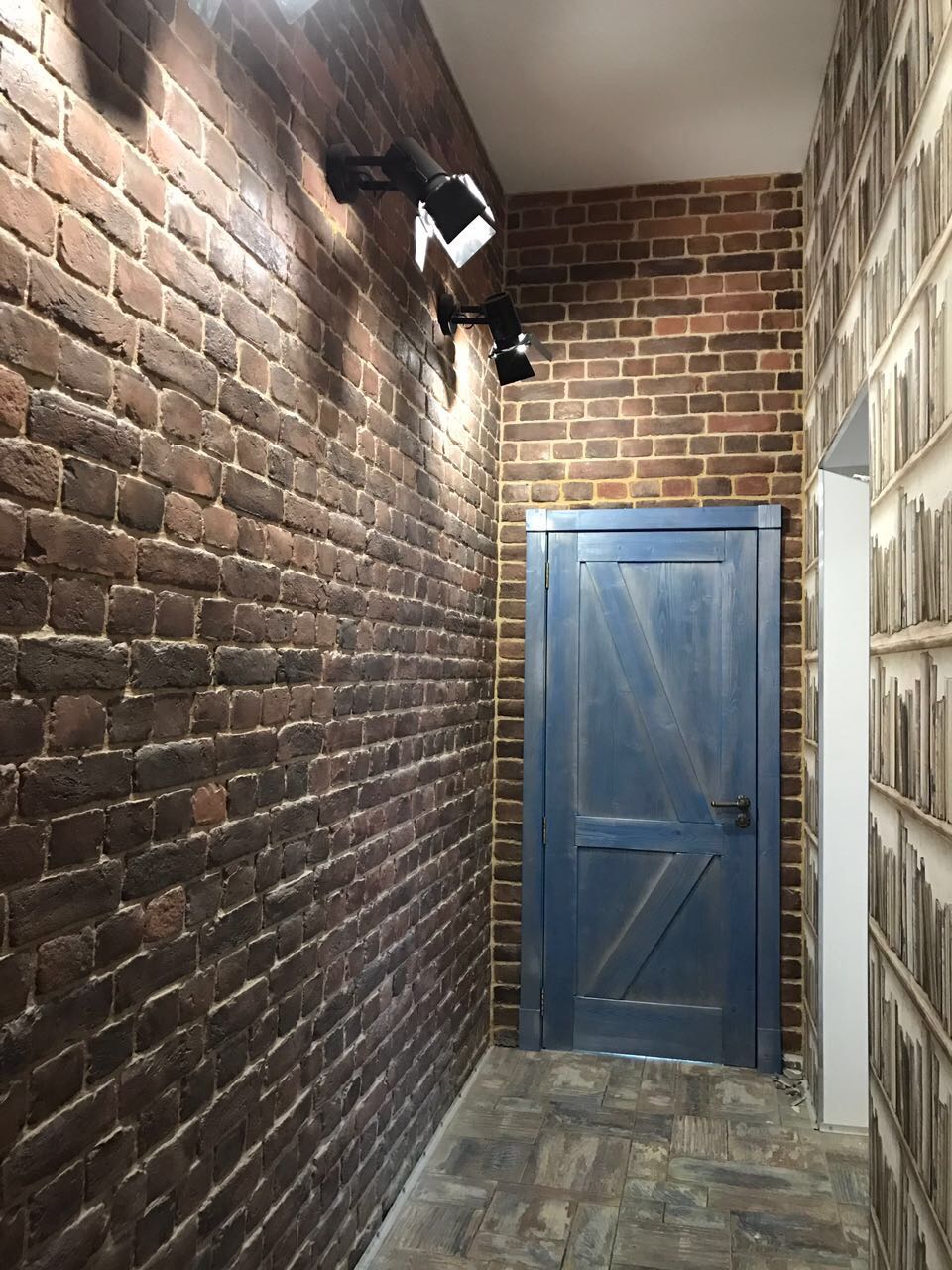 Материал выигрышно смотрится на фоне стен, выполненных из серого цемента.