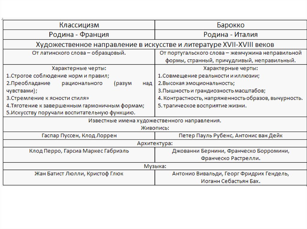 1. Какова эстетическая программа искусства классицизма? В чём выразились связь и различия между искусством классицизма и барокко?