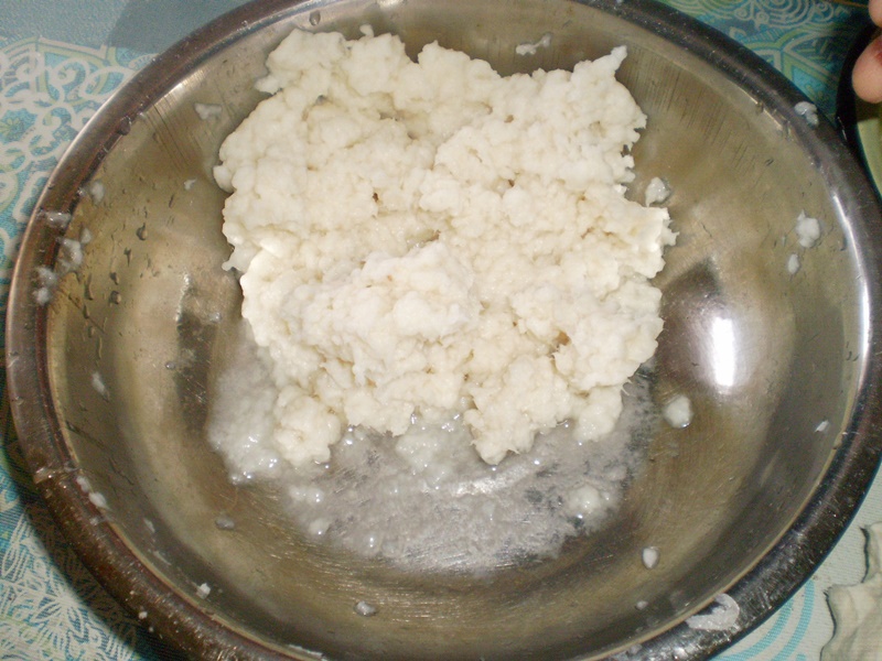 - 1 кружка без горки с теплой водой, плюс дополнительная вода из-под крана для разрыхления