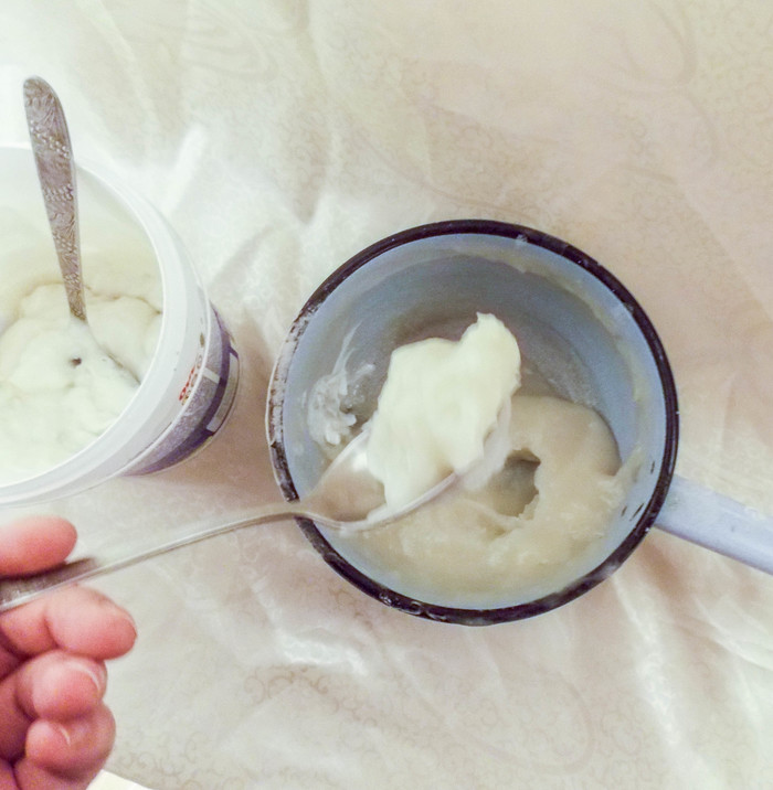 - 2 столовые ложки сухого молока или 1/4 стакана теплого молока
