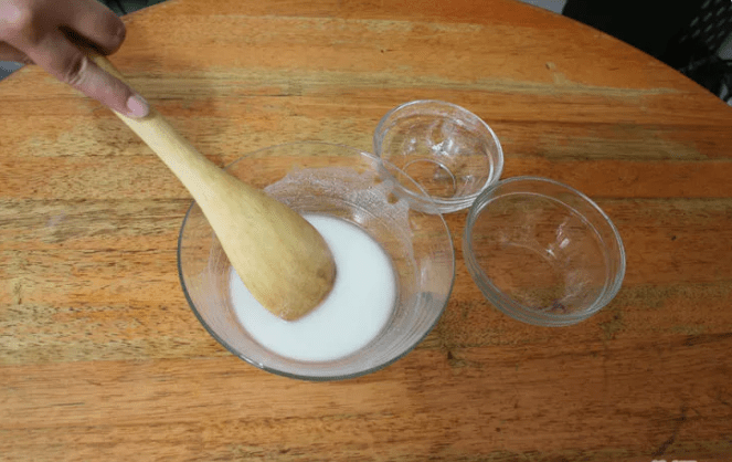 - Постепенно перемешайте муку в одном стакане воды, пока не останется комков.
