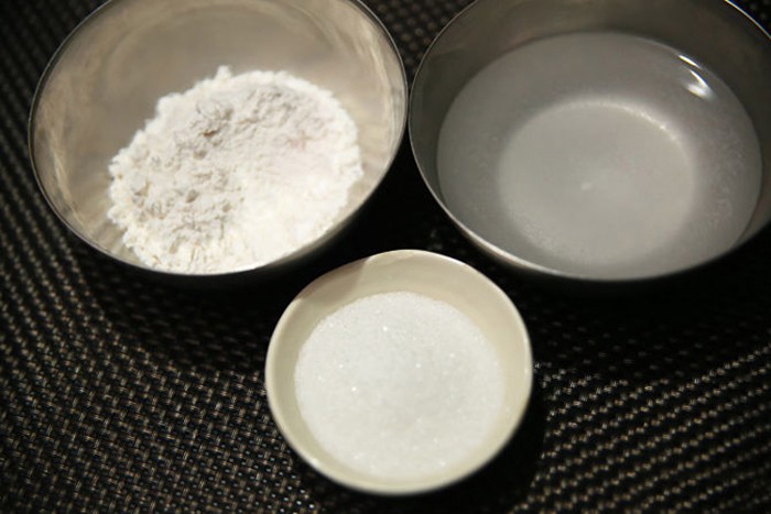 - В кастрюле смешайте муку и холодную воду. Используйте равные части муки и воды, чтобы получилась густая паста, и добавьте еще воды, чтобы получился клей.