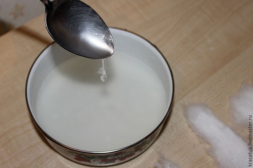 Готовят его перед началом работы в небольшом количестве, необходимом для поделки, т.к. хранить его долго нежелательно из-за того, что он может прокиснуть. В крайнем случае, хранить можно в холодильнике в герметичной упаковке, но не более 2-х суток.