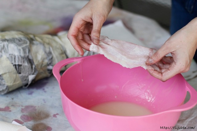 Из него делают поделки папье-маше, другие бумажные изделия, используют для скрапбукинга, создают композиции из ткани.