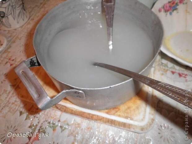 - Клейстер доводим до густоты очень жидкого теста и кипятим 5 минут.