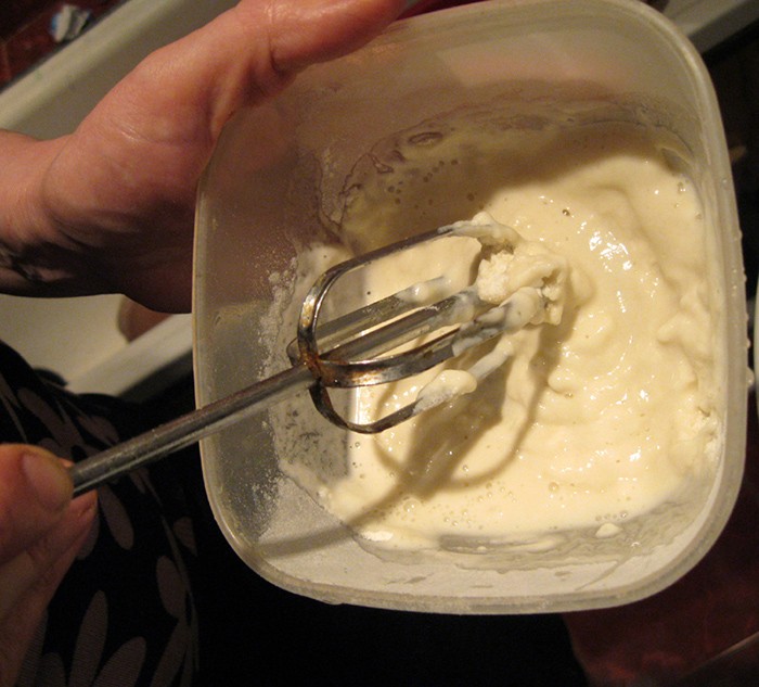 - К массе добавляют 750 мл воды и интенсивно перемешивают.