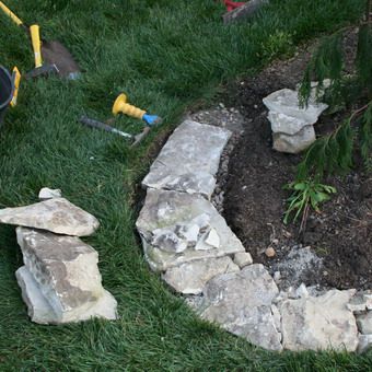 После того, как участок под клумбу на даче выкопан, необходимо разровнять его границы, там, где будет установлена ограда. Всю территорию делать ровной не обязательно. Материалом ограды может послужить что угодно достаточно надежное. Если используется декоративный камень или что-то подобное, то лучше всего стыки зацементировать. Высота ограды в такой конструкции должна соответствовать уровню земли.