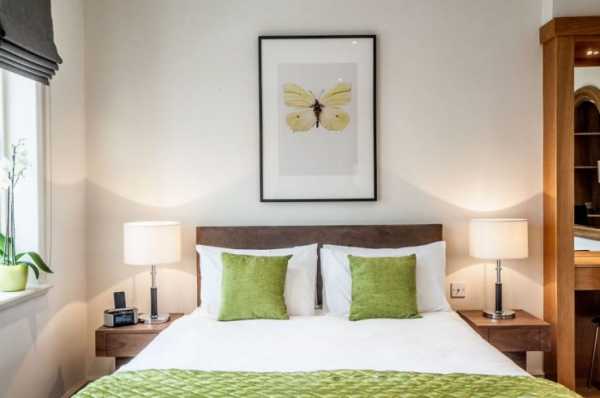Отделка комнаты должна быть однотонной и желательно светлой, наличие темного пола или потолка только сократит пространство спальни.