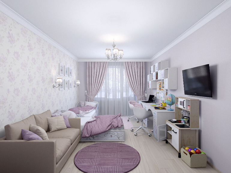 Дизайн проект детской 18 кв.м. для двух девочек