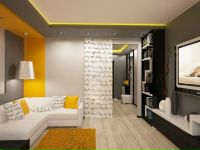 - Проводится зонирование гостиной при помощи стеклянных перегородок или стеллажей.