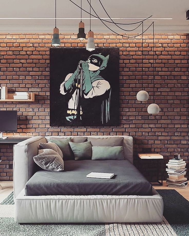 - Стены оформляются необычными картинами или брутальным граффити.