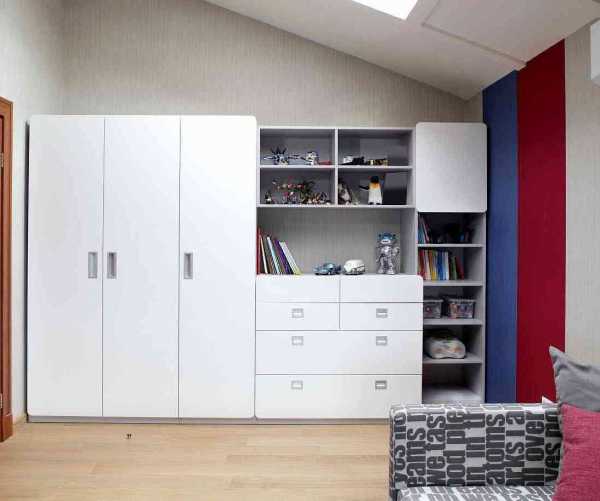При этом, игровая зона совсем не обязательно должна быть предназначена исключительно для игр. В этом месте должно быть достаточно пространства и возможностей для занятий спортом или, например, музыкой. Для игрушек и других вещей следует выделить открытый стеллаж и шкаф с глухими фасадами. Такая необходимость вызвана, опять же, переменчивостью интересов. Как только что-то одно надоедает, оно тут же убирается в шкаф, а на его место приходит нечто новое.