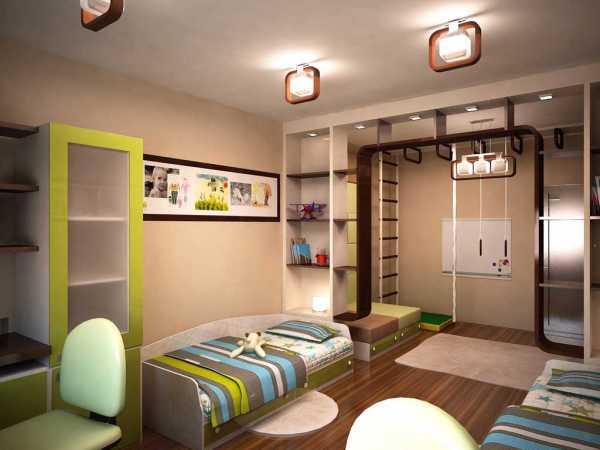 Главное, чтобы мальчики понимали, что им нужно использовать все равноправно и обоюдно согласованно. Личными деталями в комнате будут лишь полки для книжек и прочего, каждого из братьев.