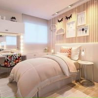 Здесь все уже намного серьезнее, чем в комнате ребенка с множеством мягких игрушек и безделушек, но еще не так выдержано и строго, как в помещении для зрелого человека. При упоминании спальни для девушки в голове рисуется образ светлой просторной спальни с красивыми шторами, большим зеркалом, туалетным столиком и пледом на кровати в цвет обоев. Однако во всю эту красоту необходимо как-то вписать как минимум шкаф для одежды и письменный стол.