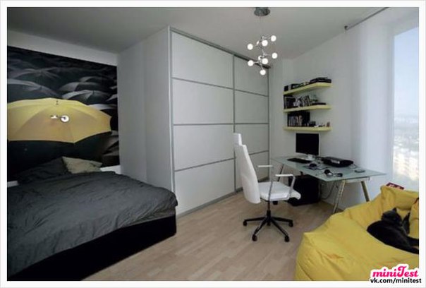Основные признаки его комнаты – это мобильность мебели и ее модульность. А все для того, чтобы можно было легко переставлять ее с места на место, чтобы менять интерьер в зависимости от настроения.