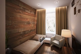Несмотря на то, что такой материал относится к «холодным», он может сделать вашу спальную комнату практичной и уникальной.