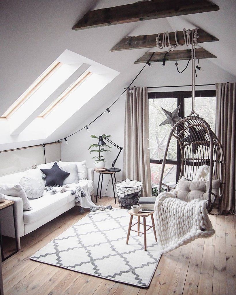 Вспомните, насколько моден сейчас стиль альпийского шале. Так что зашивать под вагонку или гипсокартон деревянные балки, поддерживающие крышу, будет просто кощунством. Наоборот, проектируя дизайн мансарды подчеркните их, ведь деревянные балки являются едва ли не самым интересным украшением любого интерьера. На чердаке особенно эффектно смотрятся состаренные балки из темного дерева на фоне светлых стен.