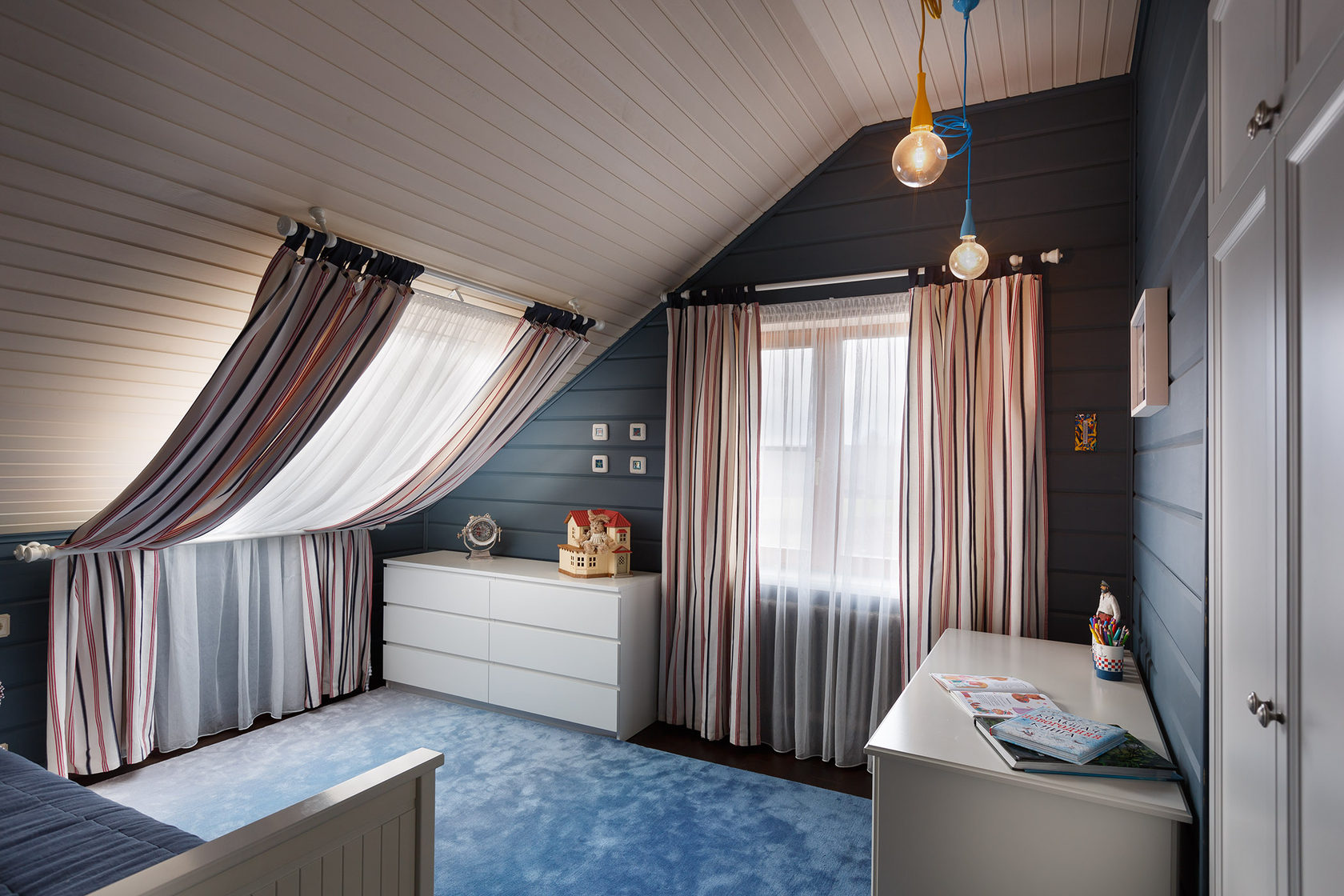 дизайн детской комнаты на мансардном этаже для девочки и мальчика, варианты оформления для подростка