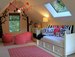 Фланцевые стены на чердаке делают верхнюю койку безопасным для детей тайным убежищем.