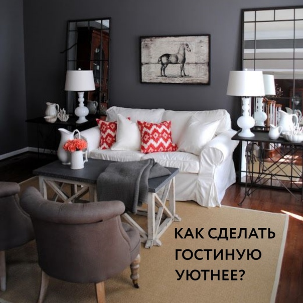 Серый цвет способствует расслаблению, отдыху, но важно, чтобы гостиная не выглядела унылой.