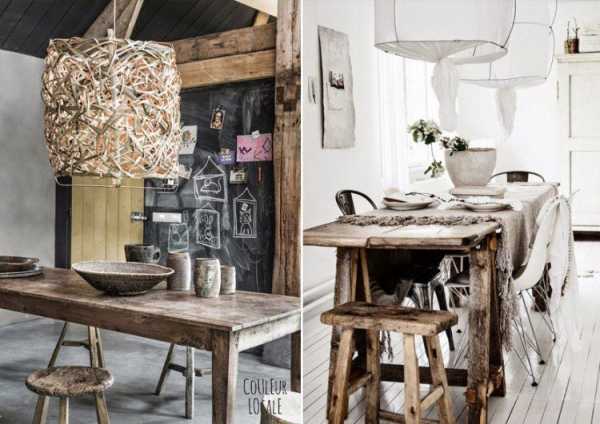 Причем приметы этого использования, и дефекты, возникшие вследствие него — трещины и неровности, царапины, сколы — не прячут, а наоборот, выставляют напоказ. Из применяемых пород дерева чаще всего используют дуб, бук, сосну и вишню.