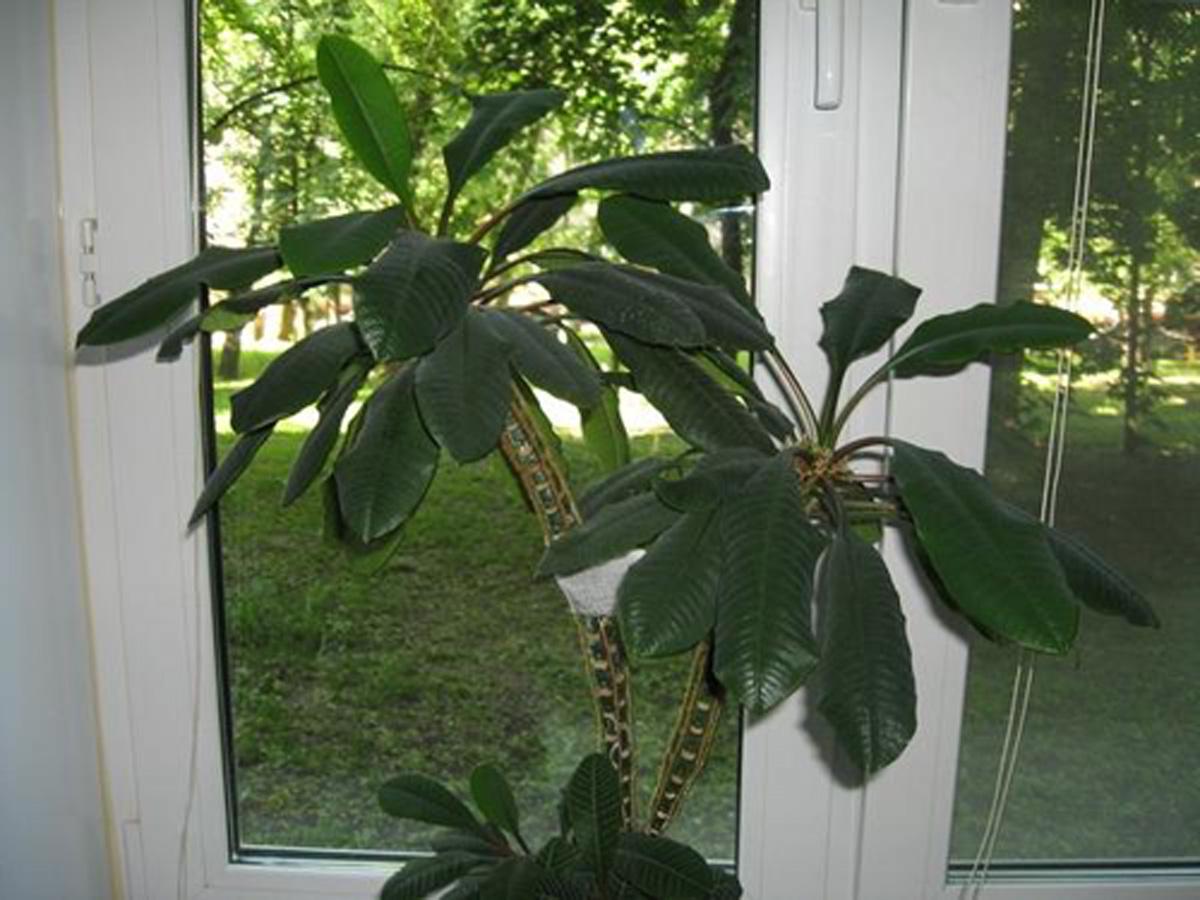 Во время активного роста поливают систематически и умеренно, а на протяжении периода покоя ― скудно и редко. - Влажность воздуха. Необходима высокая влажность воздуха. Летом и весной рекомендуется систематически каждый день увлажнять листву из опрыскивателя теплой водой.
