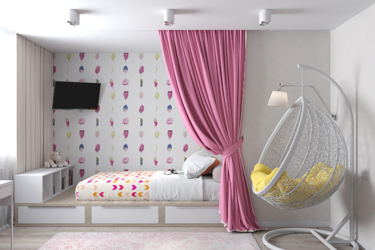 Классический цвет в дизайне комнаты для девочек – это розовый. Он романтический, мягкий и волшебный, создает сказочную приятную ауру.