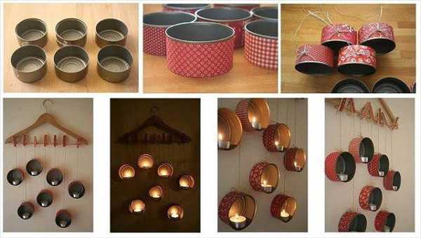 - Кто бы мог подумать, что из обычных железных банок можно сделать настолько креативные подсвечники, которые в дальнейшем подвешивают на стену и создают уют и романтику домашней обстановке;