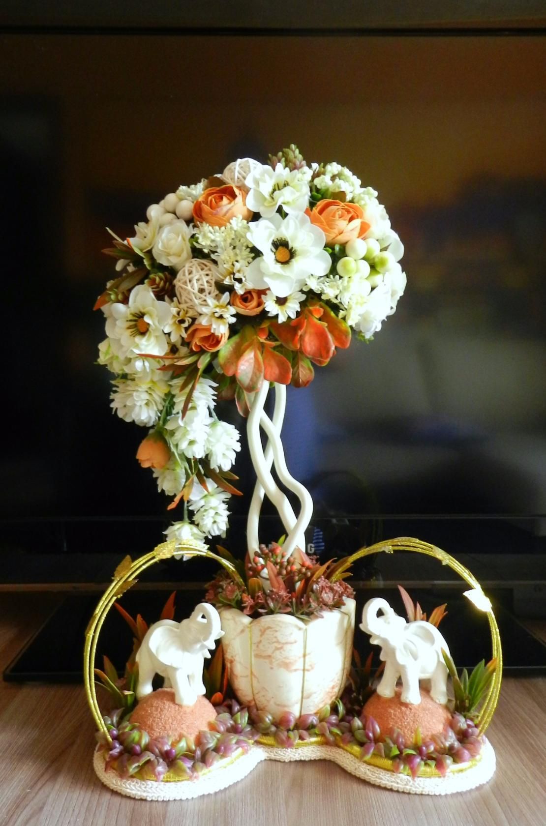 Ваш интерьер, конечно же, украсят композиции из искусственных цветов, выполненные своими руками с мастер-классом. Такие декоративные элементы можно использовать для оформления интерьера помещения, которое вы готовите для приема гостей. Ваши друзья будут также приятно удивлены, если вы на праздник преподнесете им не просто букетик цветов, а красиво оформленную композицию, например, в плетеной корзинке.