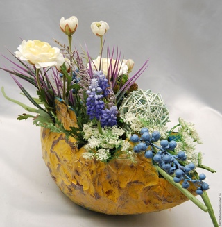 Сложные композиции создают с учетом срока раскрывания тех или иных видов растений. У них должна быть отличная стойкость, чтобы простоять в квартире максимально долго. Начинающим мастерам лучше выполнять букеты в одной цветовой гамме, например, из осенних цветов. Посмотрев видео мастер-класса по созданию моно-композиции, можно сделать интересную поделку из живых растений.