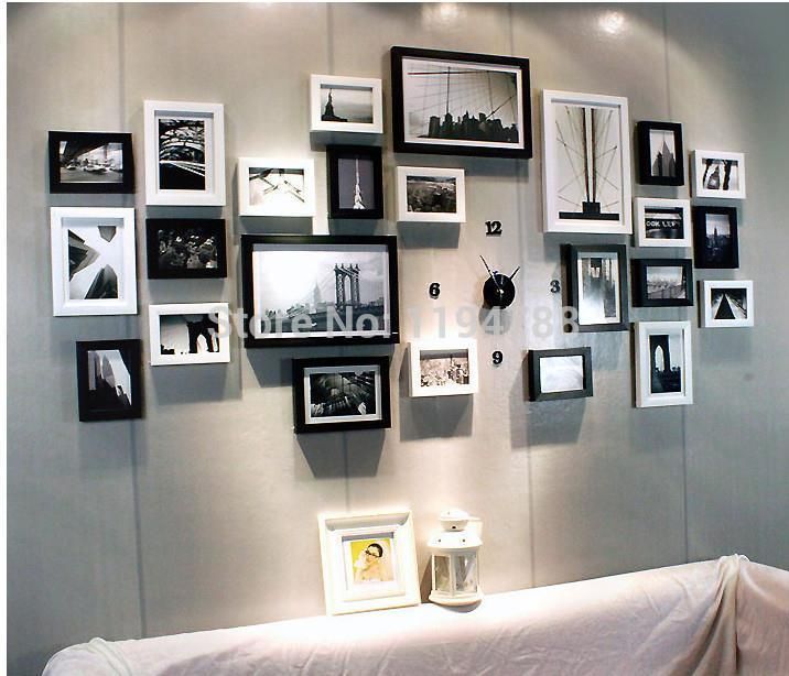 Сегодня все очень просто. Существует много готовых решений, которые вы можете испробовать. Чтобы определиться с местом и размером, можете вырезать листы картона или цветной бумаги и разместить их на стене так, как Вы планируете разместить фотографии.
