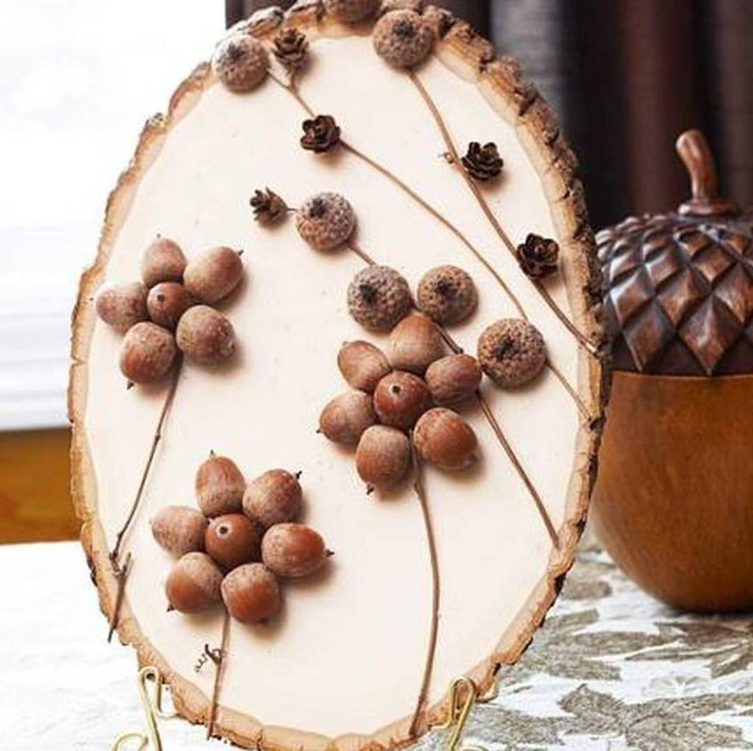Если ваша корзина старая и потрепанная, а по соседству активно плодоносит дуб – то можно набрать желудей… вооружиться клеевым пистолетом (продается в строительных магазинах стоит 3 или 5 долларов) и всю корзинку замостить, обклеить телами и шляпками желудей. Получится красивая осенняя поделка как на фото ниже.