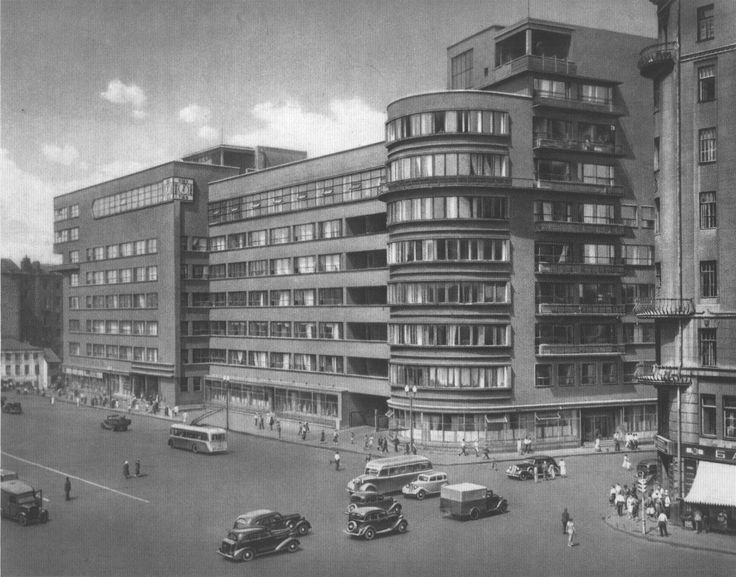 Когда Москва начала восстанавливаться после Гражданской войны, в 1922–9123-м начали проводиться первые архитектурные конкурсы, в которых принимали участие Моисей Гинзбург, братья Веснины, Константин Мельников, Илья Голосов и другие.
