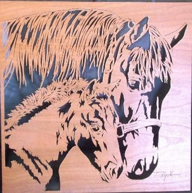 При помощи все той же пилы вырезают отдельные детали. Выходит объемное изображение. Его зашкуривают, шлифуют, вскрывают лаком. При необходимости после просыхания первого слоя лак наносится на изделие еще раз.
