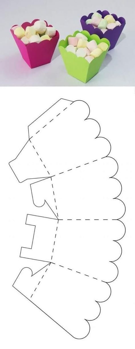 Вырезаем трафарет и сгибаем все нужные линии. Склеиваем коробочки и даем ей высохнуть. Внутри швы можно задекорировать цветной бумагой или тканью.