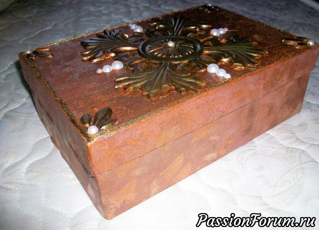 Дополнительными элементами декора могут стать различные бусинки, искусственные цветы, бантики, атласные ленты, кружевная тесьма и многое другое. Аналогичным образом декорировать картонную коробку можно тканью, упаковочной бумагой или бумагой для скрапбукинга.