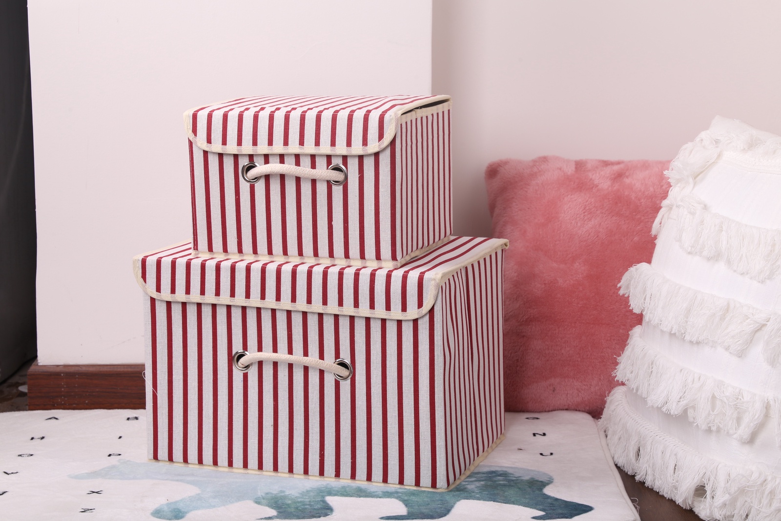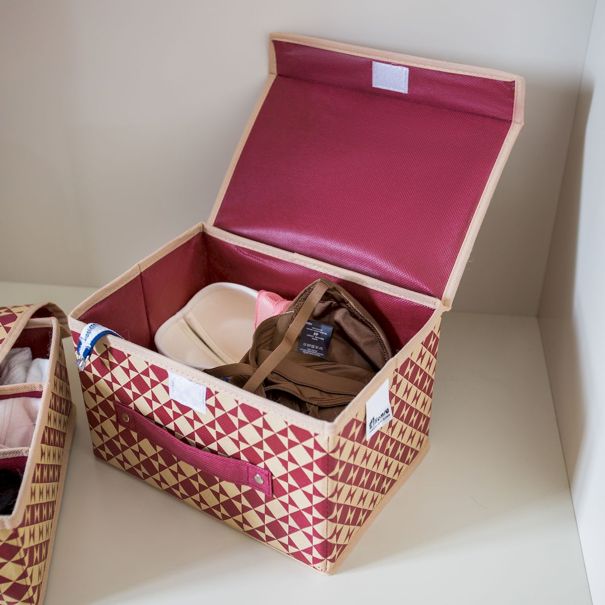 Укладывать ткани удобно, поставив коробку на боковую стенку.